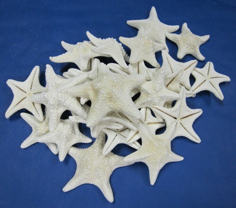 Wholesale White Jungle Starfish 4"-5-7/8" White Mud Starfish - 25 pcs @ .95 each