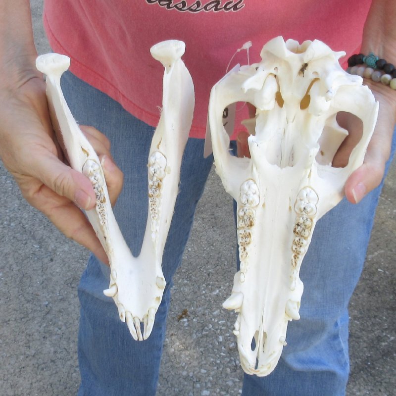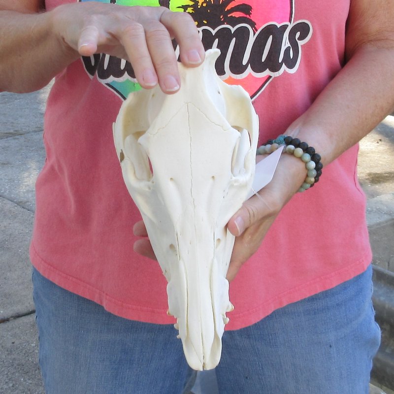 This is a Wild boar skull, wild pig skull measuring approximately 11 inches long and 5 inches wide. These boar skulls are commercial grade and will have broken and missing teeth, excessive glue and oily -  Review all photos. This wild boar skull, wild pig skull, has been cleaned (but not whitened) and is ready for display. Wild boar skulls are perfect for skull collectors and collectors of weird and unusual items.
